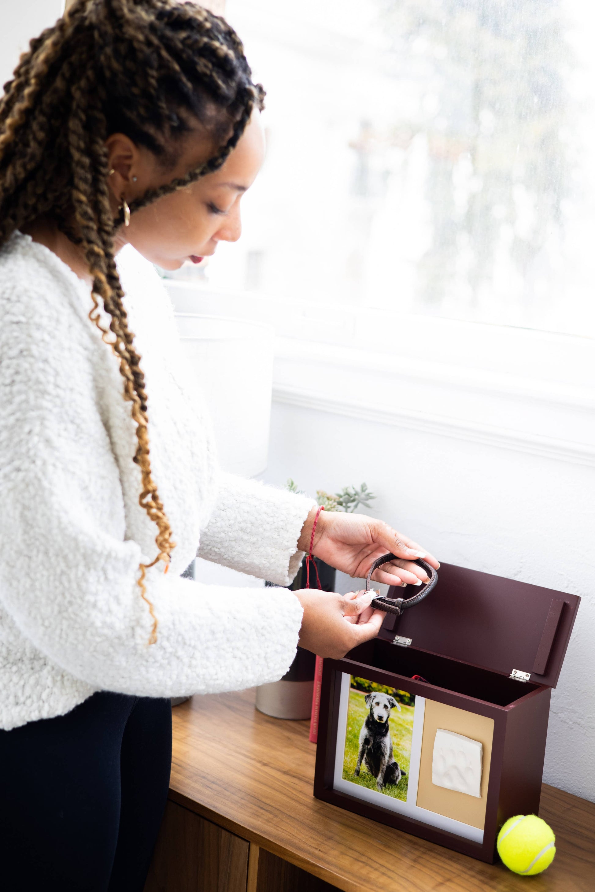 • To fill the memory box with your pet’s ashes, keepsakes, and picture, simply unscrew the bottom of the box with a screwdriver. Then use the screwdriver to put the bottom back on and place around your home on any shelf or tabletop